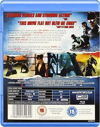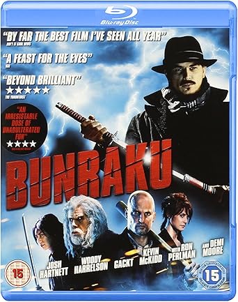 In a world without guns, a mysterious drifter (JOSH HARTNETT) arrives in a strange town terrorised by the ruthless Woodcutter (RON PERLMAN) and his army of thugs, headed by the vicious Killer #2 (KEVIN McKIDD). The drifter is forced to trust a young samurai (Japanese superstar GACKT) looking to restore his family s honour, and the local bartender (WOODY HARRELSON) with his own secret score to settle, as they team up to destroy the Woodcutter s tyrannical and corrupt regime. Using cutting-edge visuals and breathtaking fight choreography, BUNRAKU, also starring DEMI MOORE, is a wholly new and original take on the action and martial arts genre: KILL BILL meets SIN CITY.