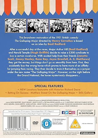 This brand-new restoration of the 1951 British comedy The Galloping Major directed by Henry Cornelius is based on an idea by Basil Radford.