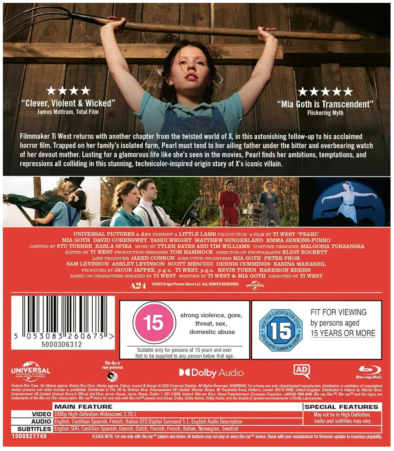 Filmmaker Ti West returns with another chapter from the twisted world of "X", in this astonishing follow-up to the year’s most acclaimed horror film. Trapped on her family’s isolated farm, Pearl (Mia Goth) must tend to her ailing father under the bitter and overbearing watch of her devout mother. Lusting for a glamorous life like she’s seen in the movies, Pearl finds her ambitions, temptations, and repressions all colliding in this stunning, technicolour-inspired origin story of X’s iconic villain.