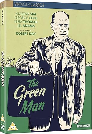 United Kingdom released, PAL/Region 2 DVD: LANGUAGES: English ( Mono ), English ( Subtitles ), SPECIAL FEATURES: Behind the scenes, Black & White, Cast/Crew Interview(s), Interactive Menu, Scene Access, SYNOPSIS: Alistair Sim plays a mild, innocuous little watchmaker who spends his off-hours as a professional assassin. His present target is windbag cabinet member Raymond Huntley. After various misfire attempts, Sim plants a bomb in a small radio and waits for the tube to warm up--but the authorities by now are on to him. The Green Man has some excellent setpieces, notably a droll snatch of black humor involving a body stuffed in a piano. The film's only debit is that, in the play upon which it is based, Frank Launder and Sidney Gilliat's Meet the Body, Sim's character is secondary, almost peripheral. By reshaping the film into a star vehicle, much of the play's intimate (albeit ghoulish) charm is dissipated. SCREENED/AWARDED AT: BAFTA Awards, .The Green Man